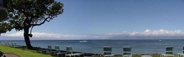 The condo is located on the ground floor thus no contending with stairs or an elevator. You can step off your lanai onto the lawn area which fronts the ocean and enjoy an unobstructed view of the spectacular sunsets, beautiful rainbows and the Islands of Lanai and Molokai just across the channel. It also allows you easy access to the sandy beach, fantastic snorkeling, the swimming pool and BBQ area. |